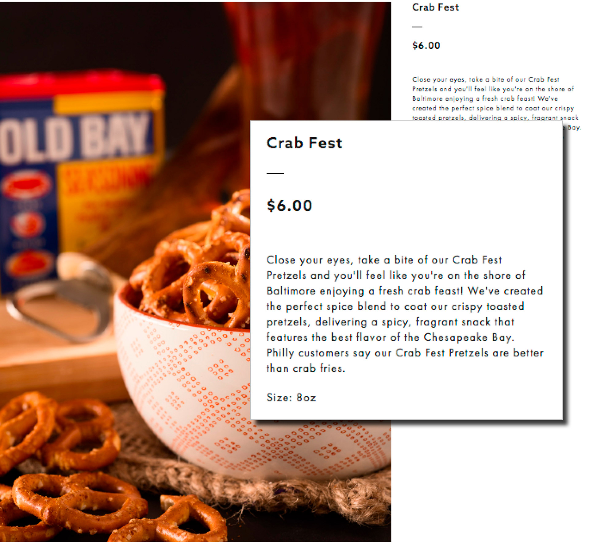 a family-owned artisanal pretzel snack retailer from Lancaster, PA. I designed web and promotional assets for the site, including art direction for all photography. In addition, I provided enticing and creative copy for product descriptions, homepage banners, email promotions, and social media channels.